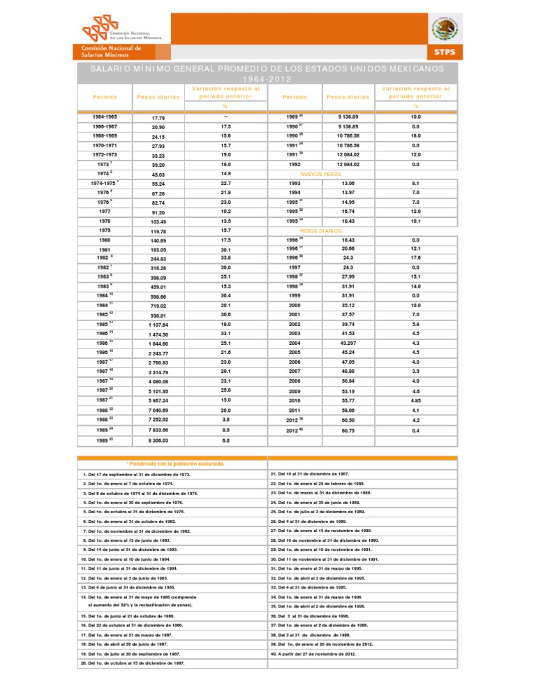 SALARIO MNIMO GENERAL PROMEDIO DE LOS ESTADOS UNIDOS MEXICANOS