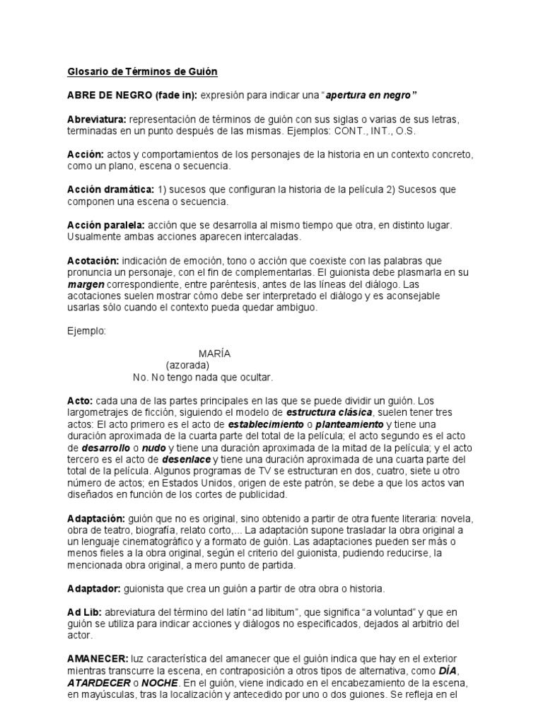 Acto: cada una de las partes principales en las que se puede dividir un guión. Los