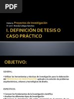 1.1. Antecedentes En el apartado de antecedentes se plantea un breve desarrollo histrico del tema de estudio, as como los primeros hallazgos, estudios relacionados con el tema de investigacin. En este apartado, se debe finalizar mencionando el propsito del estudio. 1.2. El planteamiento del problema El planteamiento del problema debe proveer un argumento contundente que resuma los problemas y las premisas esenciales que hayan surgido. En este punto, es necesario destacar la demanda de nuevas investigaciones, de manera que podra hacerse mediante una reflexin acerca de la falta de investigacin en el campo, o bien podra constituirse en un intento de resolver un dilema existente en la disciplina o de apoyar algn enfoque terico ante un conflicto existente y optar por establecer una nueva directriz al respecto. El problema debe estipularse en una sola oracin. La oracin debe estar redactada con una estructura sencilla y no debe incluir posibles detalles o subtemas del producto. 1.3. Objetivos Los objetivos son las contribuciones que el autor pretende derivar de su estudio. Para plantear los objetivos es indispensable conocer con detalle qu es posible lograr mediante la investigacin; slo as se fijan objetivos debidamente fundamentados y susceptibles de alcanzarse. Tales objetivos debern ser congruentes con la justificacin del estudio y los elementos que conforman la problemtica que se investiga. La descripcin de los objetivos debe ser clara y concisa, para lo cual es imprescindible seleccionar cuidadosamente los verbos que han de utilizarse en cada uno de ellos, como: conocer, comparar, determinar, detectar, identificar, evaluar, etctera. Esta seccin se inicia con una frase como: Los objetivos del presente estudio son... Tiene que ver con el qu, cmo y para qu , es decir, la intencionalidad del estudio Una investigacin debe contener un solo objetivo general El objetivo del proyecto puede ser temporal, siempre en congruencia con el marco metodolgico. 1.4. Justificacin: Deber definir el por qu vale la pena realizar este estudio. Qu se pretende analizar.
