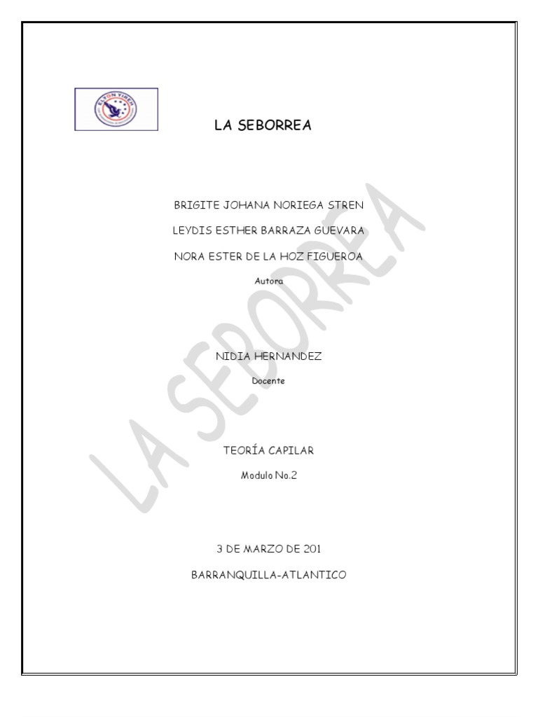 Ya elaborado nuestro trabajo podemos concluir que la seborrea es una enfermedad que se produce en varias parte de nuestro cuerpo por el exceso de grasas, mal higiene y se da en ambos sexo. Es una infeccin demasiado crnica que si no se atiende a tiempo puede llegar hasta la cada del cabello llamado alopecia.