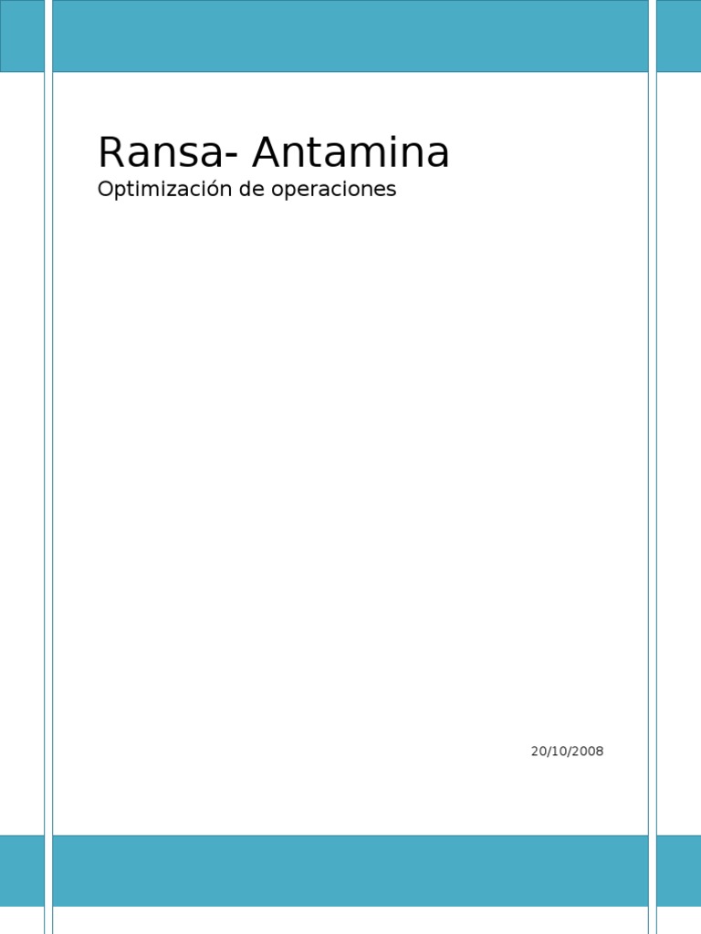 2.- Toda unidad sub contratada que salga de Lima debe salir con combustible necesario ya que el abastecimiento toma un tiempo de 40 min aproximadamente, de esta manera las unidades tendran tiempo suficiente para llegar a la mina. 3.- Se recomienda que los supervisores tengan permiso de manejo franja amarilla de manera que no se necesite que el supervisor de zona escolte la unidad, de esta manera se reducir a el tiempo de espera de las unidades en el terminal de ingreso. Descarga en Almacn Concentradora 4.- Personal de Antamina en el almacn concentradora recepciona mercadera hasta las 12:30 Am en este sentido se solicitara el apoyo de los encargados del Almacn a dar las facilidades para la descarga y carga de toda unidad que llegue hasta las 11:00. 5.- El almacn en Ransa debe consolidar la carga por separado ya que si se hace reparto las unidades tardan ms tiempo en Mina. Movimientos internos en Mina 6.- Se sugiere que toda unidad que llegue a descargar despus de las 11:00 sea designada para la realizacin de los movimientos internos. PLATAFORMA DESCARGA EN ALMACEN CONCENTRADORA