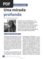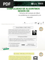 .x1i1. x2i2. ..xkik i1, i2...ik = 0 i1i2.... ik Para resolver este problema no se conoce algoritmo alguno. sta es la expresin del problema n 10 de Hilbert, que suele escribirse como: 0=a .x1i1. x2i2. ..xkik i1 [Link] 0 i1 n1 0 i2 n2 .............. 0 ik nk , siendo, en general, n1 n2 nr De este ltimo problema no slo no se conoce ningn algoritmo que le sea aplicable, sino que se sabe que no es posible la existencia de un tal algoritmo. El problema de decisin correspondiente tiene solucin negativa. (Matijasevic, 1970). No existe algoritmo para poder resolver el problema en cualquier caso, es decir, para cualesquiera datos: coeficientes a con subndices i1, i2 , ... ik y exponentes i1, i2, .. ik. Ello no quiere decir que, para alguna clase particular de problemas de este tipo (p.e. todos los problemas 1 y todos los 2.1) no exista algoritmo para calcular la solucin. Pero en el camino desde el problema ms simple hasta el ms generalizado hay algunos para los que no se conocen algoritmos. El problema de decisin correspondiente no tiene solucin o, lo que es igual, la propiedad "el problema tiene solucin" es indecidible. P.e., el Teorema de Fermat fue indecidible hasta hace muy pocos aos. Teorema de Fermat : ( x, y, z) solucin de la ecuacin xn + yn = zn para n > 2 . Para n = 0 solucin, ya que: x0 = y0 = z0 = 1, pero 1 + 1 1. Para n = 1 hay muchas soluciones: x y z
