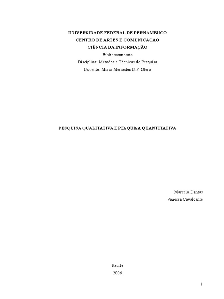 Quantitativa: além de interpretações e conclusões, deve mostrar tabelas de percentuais