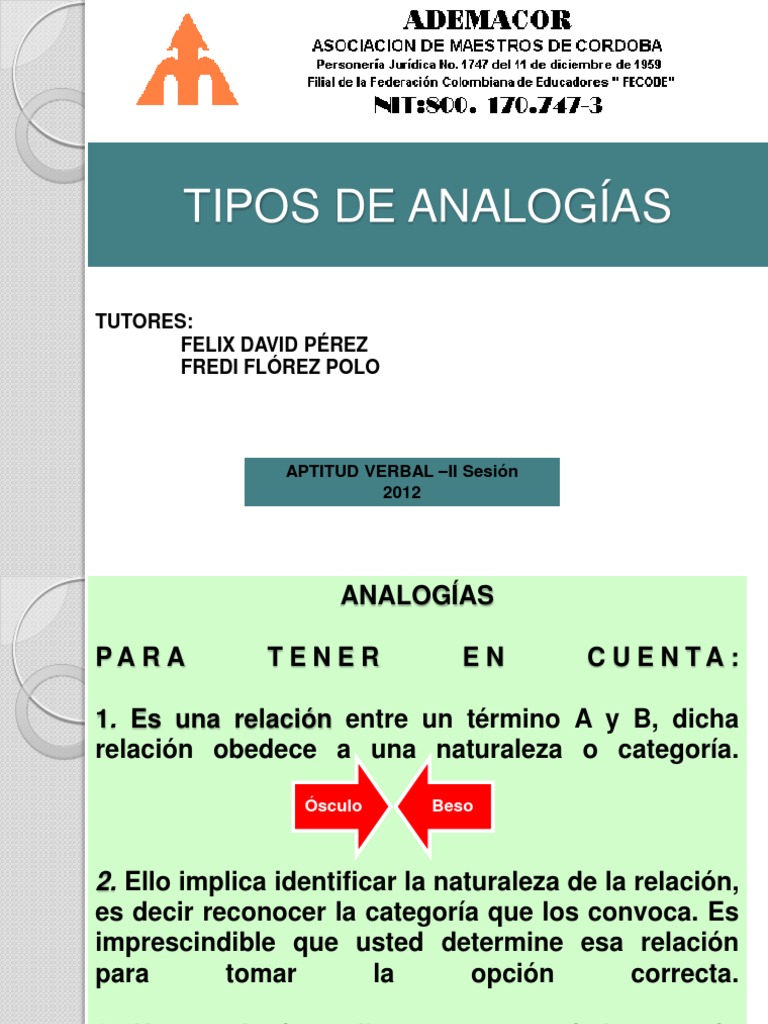 CLASES DE ANALOGA CLASES DE ANALOGA 1 SINONIMIA 2