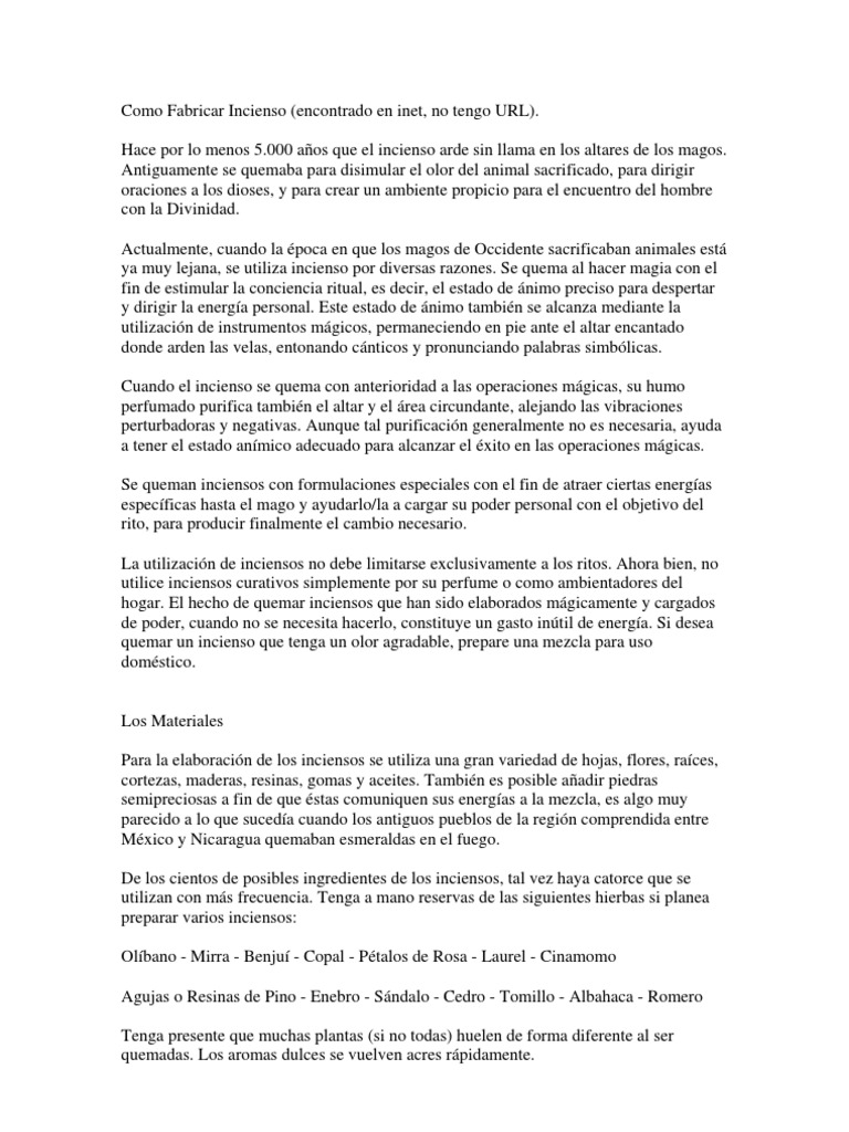 Como Fabricar Incienso (encontrado en inet, no tengo URL). Hace por lo menos 5.