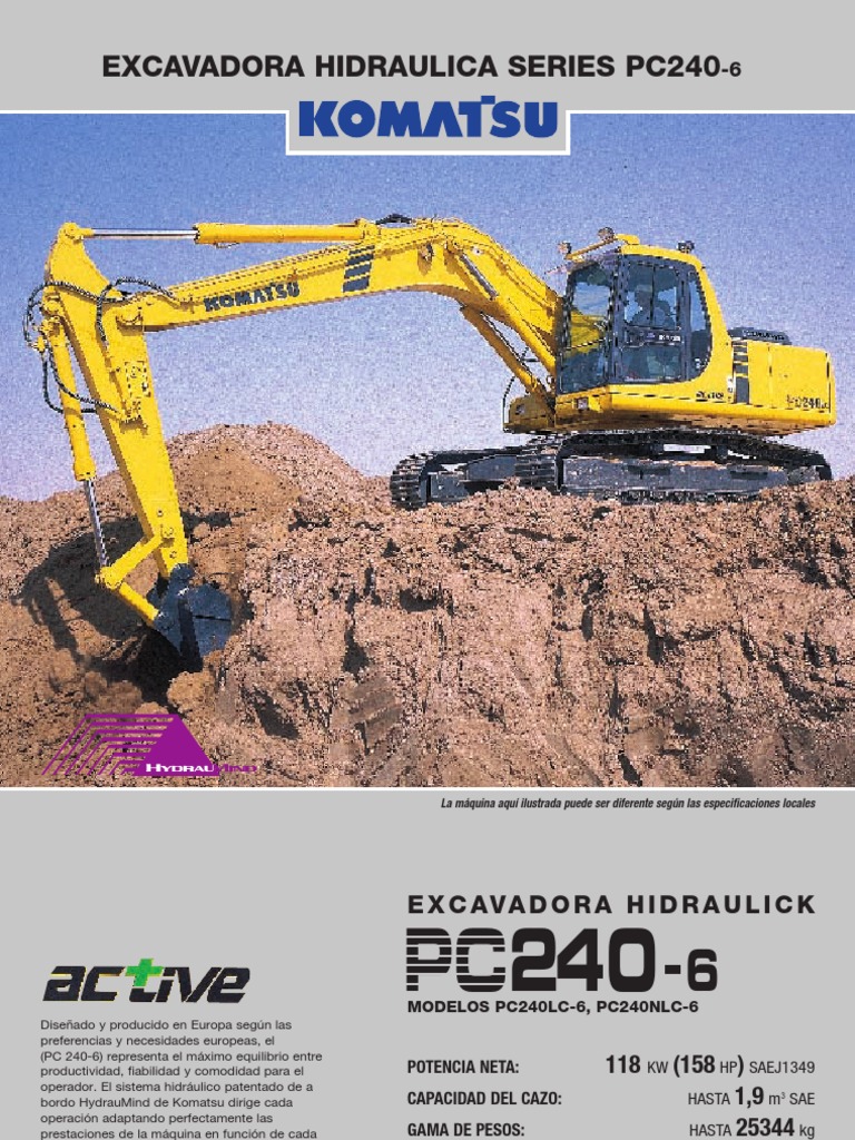 Las excavadoras hidrulicas en esta clase de peso realizan una enorme variedad de trabajos. Para que sea eficaz, una mquina debe ser productiva, estable y capaz de manejar una amplia gama de accesorios. La nueva PC240 Dash-6 Active rene estos requistos como una de las excavadoras ms avanzadas disponibles hoy.