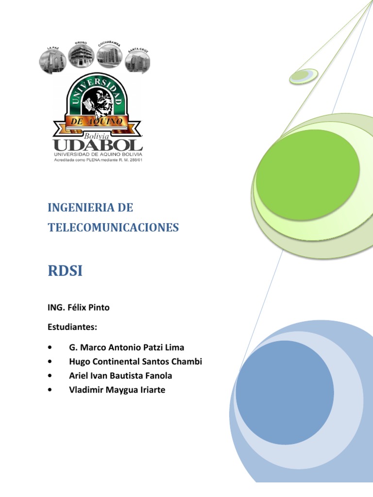 1. INTRODUCCIN RDSI (Red Digital de Servicios Integrados), es una tecnologa que permite transmisin de datos, imgenes, voz, video y texto en forma digital. RDSI le permite la conexin de varios dispositivos sobre un solo medio de transmisin, pudindose utilizar simultneamente dos (en el caso del acceso bsico).La RDSI ofrece numerosas ventajas respecto a la tecnologa anloga tradicional. Por ejemplo, los sistemas telefnicos tpicos requieren una lnea separada para cada aparato (telfono, fax, computadora, etc.), si se desea usarlos al mismo tiempo. Una de las modalidades de la RDSI es el acceso bsico (RDSI-Bsico), la cual provee al cliente dos canales de comunicacin independientes con velocidad de 64 kbps cada uno.