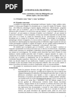 El hombre ha sido y es tema de diversos discursos no-filosficos. Es posible completar esta afirmacin diciendo que existen tambin discursos filosficos que tienen por tema al hombre. Ahora bien, si se denomina discurso antropolgico a todo discurso que tiene como tema al hombre, entonces se puede afirmar que existen discursos antropolgicos no-filosficos y filosficos. Dentro de estos ltimos es posible diferenciar algunos discursos que encaran la cuestin antropolgica explcitamente, poniendo de relieve el carcter problemtico de lo humano. En ellos el hombre no es slo un tema, sino que es fundamentalmente un problema. El hombre como problema: 4