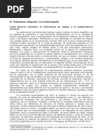 la aparicin de nuevos centros de poder poltico y la presin de los grupos sociales que aspiraban a consolidar su hegemona regional". Y adems "... podra sealarse que los ncleos dirigentes provinciales reprodujeron dentro del espacio que dominaban - o pretendan dominar - las tensiones entre Buenos Aires y las provincias. Claro que aqu ellos se volcaban por el centralismo, y en algunas instancias tambin el artiguismo tuvo que contener
