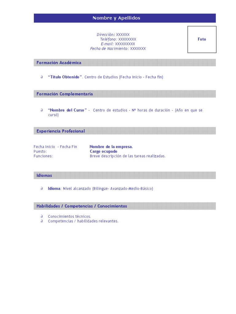 Direccin: XXXXXX Telfono: XXXXXXXX E-mail: XXXXXXXXX Fecha de Nacimiento: XXXXXXX