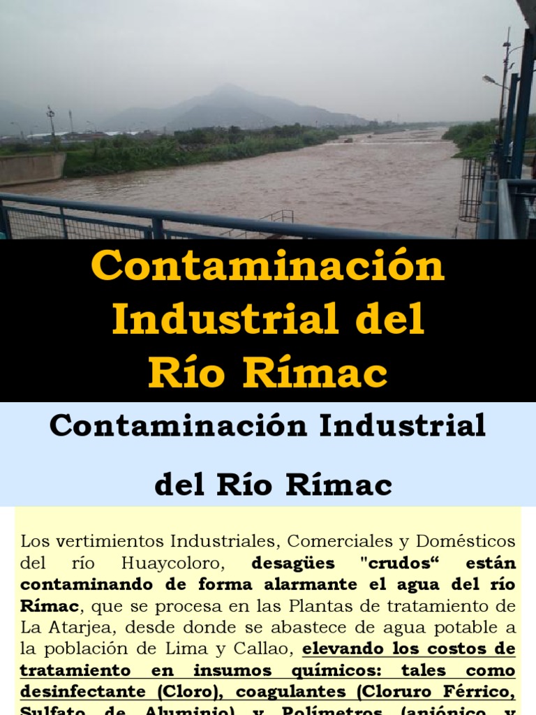 FBRICA DE POLUCIN Segn Sedapal, la contaminacin proviene del ro Huaycoloro, que desemboca en el Rmac, a 1,5 kilmetros antes de la Atarjea Yolanda Anda, de Sedapal, seala que debido al incremento de la contaminacin, hasta fin de ao se ha gastado ms de S/.15 millones de soles, slo en desinfectar el agua.