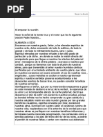 En tu bondad infinita. Oye la splica que Yo te elevo en mi fervor, Por el alma que a tu amor, Vuela en alas de la fe. Por ella te mando hoy; El consuelo que me envas, Las frvidas preces mas Y las gracias que te doy. Por ella ruego que presto Cese si es que le conviene, La triste pena que tiene por su atraso. Padre Nuestro. ACTO DE AMOR A DIOS A ti vuela, seor, mi pensamiento; Palpita por tu amor mi corazn; Haz que hacia ti me eleve el sufrimiento; Y de ofensas e injurias el perdn. Que brille en mi horizonte la esperanza, Que me alumbre la antorcha de la fe, Y bendice al espritu que avanza Entre tinieblas si esa luz no ve. De Caridad la llama abrasadora Sea en mi pecho el fuego de tal, Voz de consuelo para el ser que llora, Pan de los pobres y remedio del mal. Del egosmo arranca la semilla Si pretendiera germinar en mi, A ti oh Seor! la creacin se humilla, Mi orgullo solo desconoce a ti