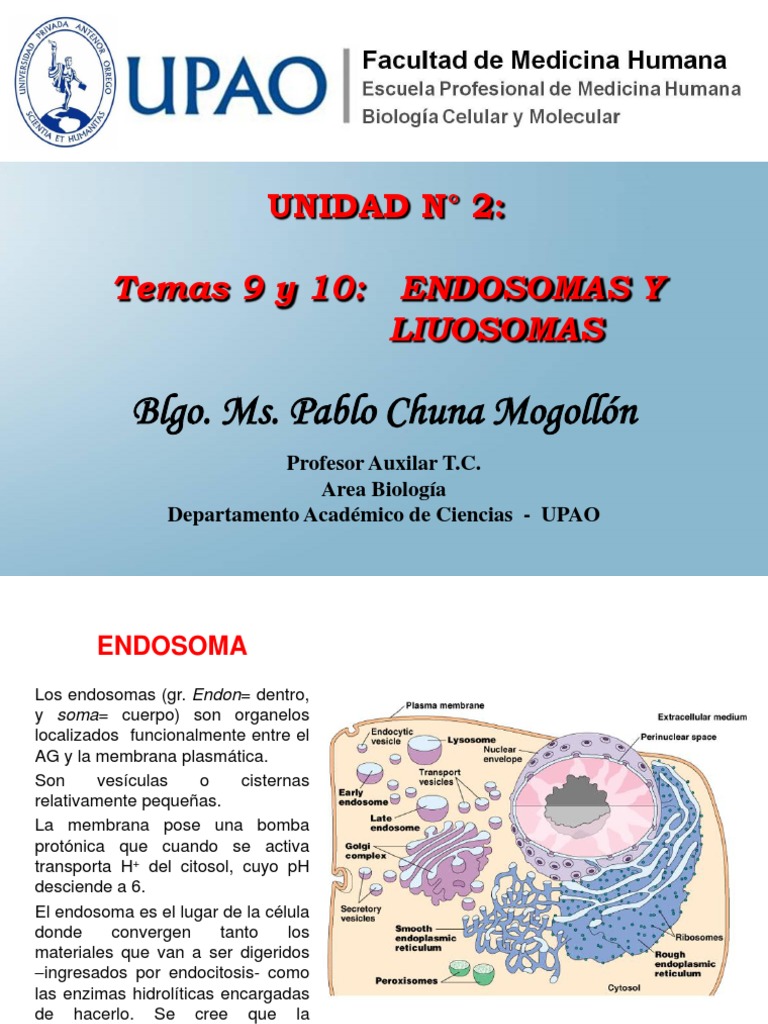 UNIDAD N 2: Temas 9 y 10: ENDOSOMAS Y LIUOSOMAS