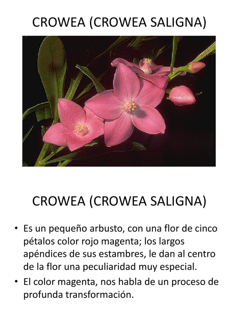 Si ests en una etapa difcil de tu vida, te sientes apaleado, preocupado, fuera de tu centro, Crowea es el remedio ideal. Esta esencia tiene un efecto calmante, proporciona fortaleza, claridad, tranquilidad, equilibrio entre cuerpo y mente.