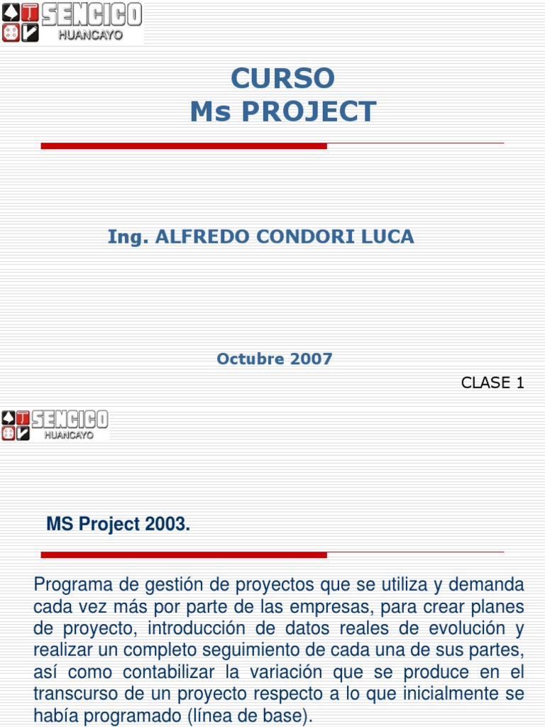 Dirigido a: Este curso EST DIRIGIDO a responsables de empresas y administradores de proyectos que deseen aprender a informatizar y optimizar adecuadamente mediante MS Project, toda la informacin relativa a tareas, recursos, fechas, asignaciones y costos de un proyecto, as como a realizar un seguimiento adecuado y certero de la toda la informacin que integra un proyecto de empresa.