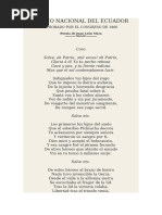 Letra y Musica: Heriberto Maluenga I Al rumor de clarines guerreros Ocurre el blindado ocurre veloz Con celosos dragones de acero Que guardan la Patria que el cielo nos di. Patria, Tuyo es Patria, tuya es Coro Patria, Patria Querida mi cielo, tuyo es mi sol Patria, tuya es mi vida, mi alma, tuyo es mi amor.