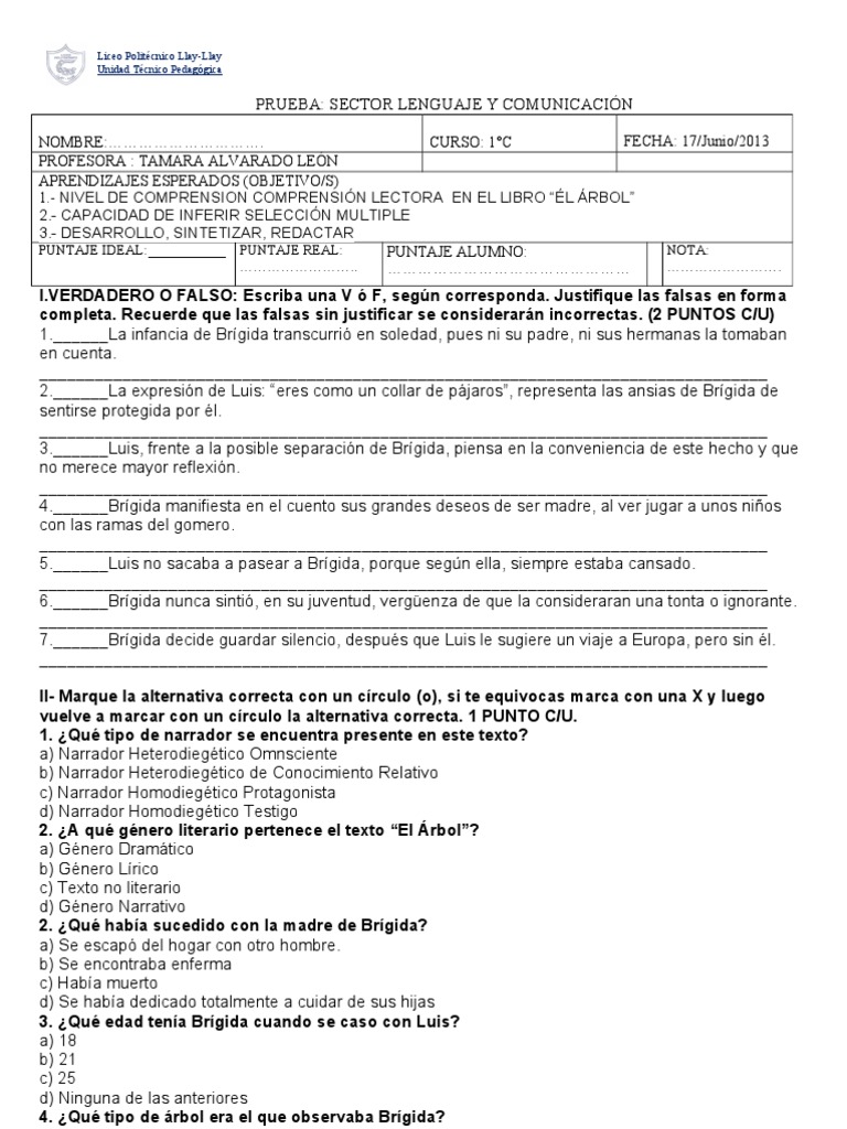 PRUEBA: SECTOR LENGUAJE Y COMUNICACIN