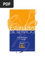 Este Manual proporciona conceptos y criterios para evaluar los servicios de receptividad que se ejecutan en dependencias de su Hotel. Debe ser conocido por el Gerente General y por todas las Gerencias de reas, las personas que apoyen su labor y el personal de los prestadores de servicio. Uso Debe ser usado por el Gerente del Hotel y las personas que apoyen su labor. Mantencin El resultado de las observaciones y registros que se ejecutan y la dinmica de la prestacin de los servicios, harn que se necesite modificar Factores y Aspectos a controlar y eventualmente, determinar nuevos Estndares para la medicin. Por lo anterior, se debe actualizar cada vez que sea necesario, debiendo darse cuenta a los participantes de las actividades de observacin, de dichas actualizaciones. Para ello, una primera actividad de Administracin de Servicios ser nombrar un responsable de la incorporacin de las modificaciones, almacenamiento en lugares establecidos, control de los ejemplares y comunicacin de las actualizaciones. Contenido y estructura Contiene los elementos necesarios para la evaluacin que debe llevar a cabo el observador de los elementos fsicos y actividades involucradas en el funcionamiento de los Servicios de Alimentacin, Alojamiento, Aseo y Mantencin que se prestan. El Manual est estructurado para ser una gua permanente en la aplicacin de las observaciones y el registro de los valores medidos, por lo que contiene elementos tericos y prcticos que se han incorporado en los siguientes apartados:
