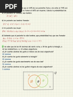 1. A un conjunto de 5 nmeros cuya media es 7.31 se le aaden los nmeros 4.47 y 10.15. Cul es la media del nuevo conjunto de nmeros? 2. Un dentista observa el nmero de caries en cada uno de los 100 nios de cierto colegio. La informacin obtenida aparece resumida en la siguiente tabla: N de caries 0 1 2 3 4 fi 25 20 x 15 y ni 0.25 0.2 z 0.15 0.05