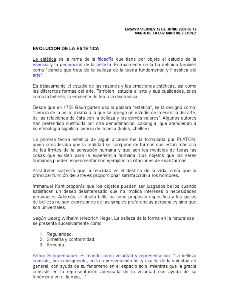 esencia y la percepción de la belleza. Formalmente se la ha definido también