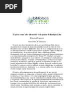 Ms msero que las piedras triste a ms no poder el hombre esculido el atril hubiera querido aniquilarse Qu fro el viento me penetra en el sitio de las hojas de las orejas muertas Solo cmo patalear para ahuyentar el fro con qu pie iniciar la semana Un silencio que nunca acaba Ni una palabra tierna para engaar al invierno La sombra del alma del amigo La escritura Tan slo las seas Mi sangre dara una sola vuelta Los sonidos se pierden en el espacio, como dedos congelados. Nada ms que un patn abandonado en el hielo El fulano A travs de l se ve el da