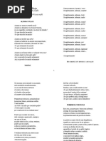 Oye t, pasajera que vas de puerta en puerta: tal vez yo soy el hombre que vuelve de tu olvido; colma tu delantal la primavera muerta, y de un color de parvas tus ojos se han teido.