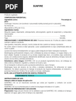 Sunfire 240 es un pro - insecticida, al que es convertido en su forma activa mediante las enzimas del insecto. Acta desacoplando la fosforilizacin oxidativa. Es altamente efectivo por ingestin y tiene accin de contacto. Posee buena accin de translaminar con limitada accin ovicida.Sunfire 240 acta inclusive con insectos que han desarrollado resistencia a otros insecticidas. Para evitar la resistencia se recomienda evitar las aplicaciones sucesivas del mismo grupo de productos.