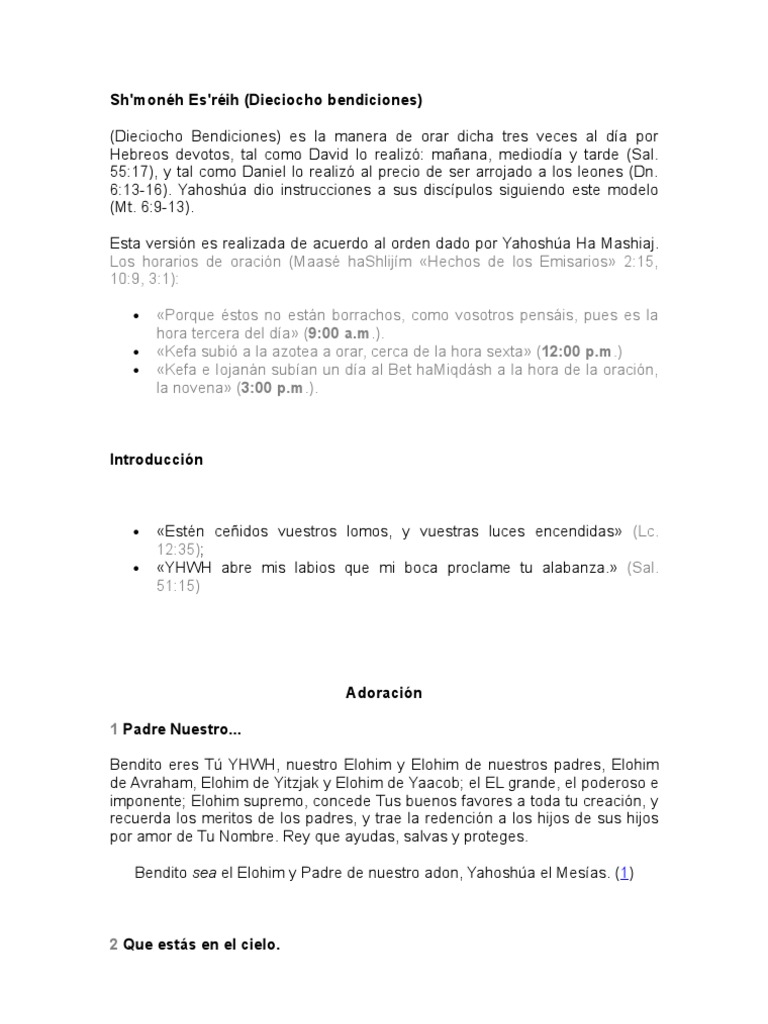 Sh'monéh Es'réih (Dieciocho bendiciones)