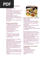 das y cortadas 1/4 taza de zanahoria cortadas en cubitos de taza de quinua cocida Media cucharadita de organo Sal y pimienta al gusto 2 tazas y media de agua de taza de alverjas 1 taza de acelga cortada 1 cuchara de culantro cortado Palta en tiras, pimienta, queso Conozca los ingredientes: Caliente el aceite en un recipiente a fuego lento. Agregue las cebollas y deje calentar un rato. Si va a usar el ajo, adalo. Agregue las papas y zanahorias. Remueva hasta que se cubran con el aceite. Cocine por un par de minutos. Aada la quinua cocida, el organo, sal y pimienta. Mueva bien. Vierta el agua y deje que hierva. Coloque las alverjas. Poner a fuego lento, tapar la olla y dejar cocinar por 10 minutos (hasta que las verduras estn cocidas). Mientras tanto, saltee las verduras en una sartn aparte por un minuto y colquelas en la sopa terminada. Aada la salsa de aj y el culantro picado tambin cuando haya terminado. Fuente: INIA