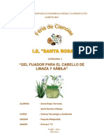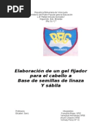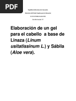 El presente Trabajo de Investigacin ha sido elaborado por mi persona tomando en consideracin los efectos no tan beneficiosos a largo plazo de los gel utilizados por muchas personas, en especial jvenes, luego de la investigacin, observacin e hiptesis planteadas, se lleg a la conclusin que la elaboracin de un Gel Fijador para el cabello de Linaza y Sbila sera muy beneficioso para los usuarios.
