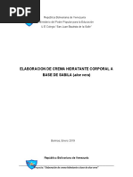 Un ao ms adelante estudiantes de la misma institucin (Almarza Eguis, Aez Lismary, Aez Richard, Muos Wander, Sabril Sabrina, Teran Nerio.) Junio 2008 realizaron una investigacin titulada Elaboracin de una crema humectante nutritiva y protectora a base de Aloe Vera para el cuidado de la piel, de igual forma el efecto hidratante de la misma, utilizando una metodologa de tipo de investigacin aplicada.