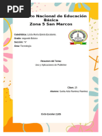 que incluyen formatos de boletines, folletos, postales, sitios web y correo electrnico. 2.- Obtener una vista previa y acceso a las plantillas de gran calidad de Microsoft Office Online desde Office Publisher 2007 3.- Conectarse con los clientes mediante la personalizacin de las publicaciones. 4.- Convertir las publicaciones a formato PDF o XPS. 5.- Simplificar el proceso de creacin de publicaciones con las tareas de Office Publisher. 6.- Ahorrar tiempo al volver a usar el trabajo. Varias caractersticas nuevas y mejoradas le ayudan a aprovechar al mximo el tiempo invertido en su trabajo. Ahorre tiempo y esfuerzo almacenando el texto y los grficos de uso frecuente en la nueva biblioteca de contenido para su uso en otras publicaciones de Publisher 7.-Crear publicaciones personalizadas a partir de una base de datos. Use la combinacin de catlogos mejorada para crear automticamente una publicacin mediante la combinacin de imgenes y texto de un origen de datos (como Excel o Access). Cree publicaciones personalizadas de distinta complejidad, desde una hoja de datos hasta un catlogo complejo. Desventajas de utilizar Microsoft Publisher 1.- A diferencia de otros programas de autoedicin Publisher ofrece publicaciones solo de tipo casero que aunque son de aspecto profesional, realmente no lo son, pues la facilidad con la que el usuario trabaja este software, impide de alguna manera que este plasme en la hoja lo que quiere disear, las plantillas claramente prediseadas son de un gusto tal vez clsico, esto es ocasionalmente no es tan til pues impide al usuario dar su toque personal. 2.- Compenetracin con otros programas del mercado no es profesional, y no puede compararse con el resultado del trabajo de un experto en diseo grafico que use programas como photoshop entre otros ocupa bastante para ser un programa tan simple.