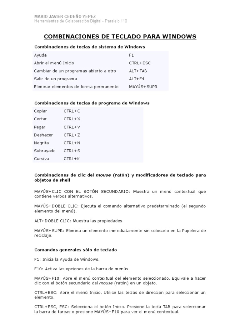 Combinaciones de Teclado para Windows