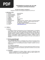 Profesionales Invitados para clases tericas: [Link] Avalos Cordero Q.F. Amrico Figueroa Vargas E. SISTEMA DE [Link] aplica el Reglamento de la Escuela Acadmico Profesional. Teora.- Asistencia obligatoria, en caso de inasistencia se proceder de acuerdo a las normas vigentes, RR N03740-R-07 que restituye la vigencia de la RRN04964-R-03. Las clases tericas se evaluarn a travs de 2 exmenes escritos, cancelatorios, un sustitutorio y un examen de desaprobados. En cada examen se incluir los temas desarrollados en los captulos correspondientes. La calificacin ser de 0 a 20. La nota promedio de los calificativos de la teora representa el 50% de la Nota del Curso. Para tener derecho al examen sustitutorio debe cumplir con los requisitos de las normas vigentes. Prcticas.- La asistencia es obligatoria, en caso de inasistencia se aplicar el reglamento vigente. El nico documento oficial del registro de asistencia est constituido por las fichas que entrega la EAP de Farmacia y Bioqumica; el llenado de las fichas de asistencia es de nica responsabilidad del profesor de aula y del delegado. Las fichas debern ser entregadas a la Escuela Acadmico Profesional de Farmacia y Bioqumica al finalizar las clases tericas o prcticas, de no hacerlo, el documento pierde validez. La evaluacin incluir aspectos tericos, experimentales, informes de cada prctica realizada y la sustentacin de un trabajo de investigacin bibliogrfica y/o experimental. La calificacin es de acuerdo al Art. N 26 del Reglamento de la Escuela Acadmico Profesional. La nota promedio de prctica corresponde al 50% de la nota del curso La evaluacin prctica es permanente y comprende los siguientes rubros con los respectivos pesos cada uno: Pasos Orales = 0,2 Pasos escritos = 0,3 Trabajos e Informes de prcticas = 0.1 Trabajos de Investigacin = 0.4 F. INSTRUCCIONES GENERALES El alumno ser puntual en la asistencia a las clases del curso y entrega de trabajos. El alumno deber asistir adecuadamente vestido y en orden.