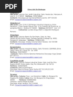 Domicilio Blvd. Arturo Montiel Rojas s/n Col. La quinta Merced CP 50450. Av. Manuel vila Camacho #310 Col. Centro CP 74200. Blvd. Nios Hroes #805-A Col. Revolucin CP 74200. Corona Araiza #32 Col. Centro CP 48900. Esperanza #30. C.P. 02000. Av. Jurez No. 200 Col. Cuajimalpa de Morelos Ave. El Rosario #1025 Col. Tierra Nueva CP 02430. Calzada de las Armas #315 Local 3 Colonia San Pedro Xalpa CP 02011. Carretera A Tepic, Local Sa-04a, Col. Valle Banderas CP 63735 Blvd. Chachue SN Col. Sector R CP70989 Revolucin #911 Col. Mixcoac CP 03910. Santa Cruz #39 Col. Portales CP 33000. Av. Juan Pablo II s/n Col. Jardines de Virginia CP 94294. Blvd. Ruz Cortinez #1350 Col. Sustem CP 94299. [Link] #10 Col. Tamsa CP 94296. Carretera a Todos Santos Km. 3.5 #2032 Col. Fracc. Brisas del Pacifico CP 23410. Av. Leona Vicario y Primavera #Local 9 y 10 Col. Lagunitas CP 23420. Av. 6 de abril #1 Col. Centro CP 83600. Av. C #34 Col. Caborca Centro, CP 83600 Carretera Allende Km 1 s/n Col. Centro CP 67450. Av. Morelos #47 Col. Centro CP 90200. Calle 53 #17 Col. Centro CP 24000. Calle 10 #325 Col. Centro CP 24000. Av. Patricio Trueba #306 Col. Barrio San Rafael CP 24090. Ave. Venustiano Carranza #8 Col. Centro CP 95870. Benito Juarez #163 Col. Centro CP 84620. Av. Tulum #1165 Col. Supermanzana 2 Centro CP 77500. Av. Prolongacin Tulum s/n Col. Supermanzana 67 CP 77507. Circuito Vial y Av. Costa Maya MZ. 22 LOTE 1. Col. Regin 228. C.P. 77516. Plaza Las Amricas. Blvd. NICHUPTE s/n. Entre calles: Esq. con Av. Las Torres. Col. Cancn Centro CP 77500 Emiliano Zapata #52 Col. Centro CP 91680. Perifrico Carlos Molina Col. Paso y Playa CP 86500. Abraham Ban s/n Col. centro CP 86500. Morelos #111 Col. Centro CP 86500. Av. Venustiano Carranza #93 Col. Centro CP 95870. Av. San Vicente Guerrero #1895 Col. Porvenir CP 26200. Libramiento Emilio Mendoza Cisneros #2000 Col. Aeropuerto CP 26230. Blvd. Agustn Olachea Avils #151 Col. Fracc. Real CP 23600. Av. Ignacio Allende s/n Col. Centro CP 31500. Blvd. Fernando Baeza #2821 Col. Barrio Lerdo CP 31500. Independencia #09 Col. Centro CP 28500. Av. Corregidora s/n Col. Aeropuerto CP 21419. Calle 41 #1 Col. Ciudad del Carmen Centro. CP 24100 Calle 28 #115. Col. Centro. C.P. 24100. Reforma #49 Col. Centro CP 49000. Calzada Fco. I. Madero #570 Col. Centro CP 49000. Portal 5 de Mayo #9 Col. Centro CP 49000. Ugarte #343 Col. Centro CP 32000. Av. Lpez Mateos #2125 Col. Jardines de San Jos CP 32390. Av. Tecnolgico #2701 Col. Del Mrquez CP 32610. Blvd. Zaragoza #3550 Col. Cd. Moderna CP 32670. Av. Las Torres #1590 Col. Las Flores CP 32699. Henequn #1511 Col. Zaragoza CP 32570. Ramn Rayn #295 Norte Col. Salvador Zaragoza CP 32575. Blvd. Zaragoza #6880 Col. Parque Ind. Zaragoza CP 32570. Blvd. Independencia #2751 Col. Hacienda Universidad CP 32570. Paseo Triunfo de la Repblica #4450 Col. Monumental CP 32310. Av. Ponciano Arriaga #7931 Col. Parque Industrial Aztecas CP 32679. Blvd. Independencia #2810 Col. Lote Bravo CP 32695. Blvd. Francisco Torres Villareal #2050 Col. Fracc. Senecu CP 32548. Av. Manuel J. Clouthier #450 Col. Parque Ind. Rio Bravo CP 32600. Ave. de las Torres #2111 Col. Bravo CP 32575. Av. Tecnolgico #1770 Col. Fuentes del Valle CP 32460. Av. 16 de Septiembre #293 Col. Centro CP 32000.