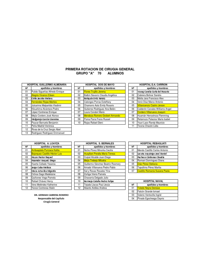 PRIMERA ROTACION DE CIRUGIA GENERAL GRUPO "A" 70 ALUMNOS