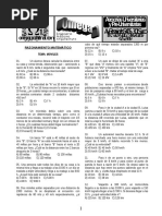 1. Una persona est a 450m de su casa y se acerca con una velocidad de 30m/min; en ese instante sale su perro de la casa a darle alcance a 60m/min y una vez que encuentra a su amo, regresa a la casa y repite lo mismo hasta que el amo llega a su casa. Qu distancia recorri el perro? a) 900m d) 1100 b) 700 e) 850 c) 1200 6. Dos vendedores ambulantes, deciden dejar de vender sus caramelos, cuando ambos hayan vendido la misma cantidad. Lalo lleva vendidos 49 caramelos y vende a razn de 7 caramelos por hora; Tino lleva vendidos 40 caramelos y vende a razn de 10 caramelos por hora. Despus de cunto tiempo ambos habrn vendido la misma cantidad de caramelos? a) 2h d) 3 2. Una persona se dirige a una bodega con una velocidad de 16m/s y regresa a 4m/s. SI tarda 10 segundos en total, a qu distancia estaba la bodega? a) 32m d) 48 b) 64 e) 56 c) 28 b) 2,5 e) 3,5 c) 2,8