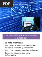 que predomina el elemento qu. Consiste en dar a conocer el contenido de los hechos. hechos Importa qu se dijo, qu aspectos novedosos se encontraron. Funciona en casos de conferencias, discursos, sesiones parlamentarias, libros, publicaciones, etc. La tcnica predominante ser la narracin narracin. .