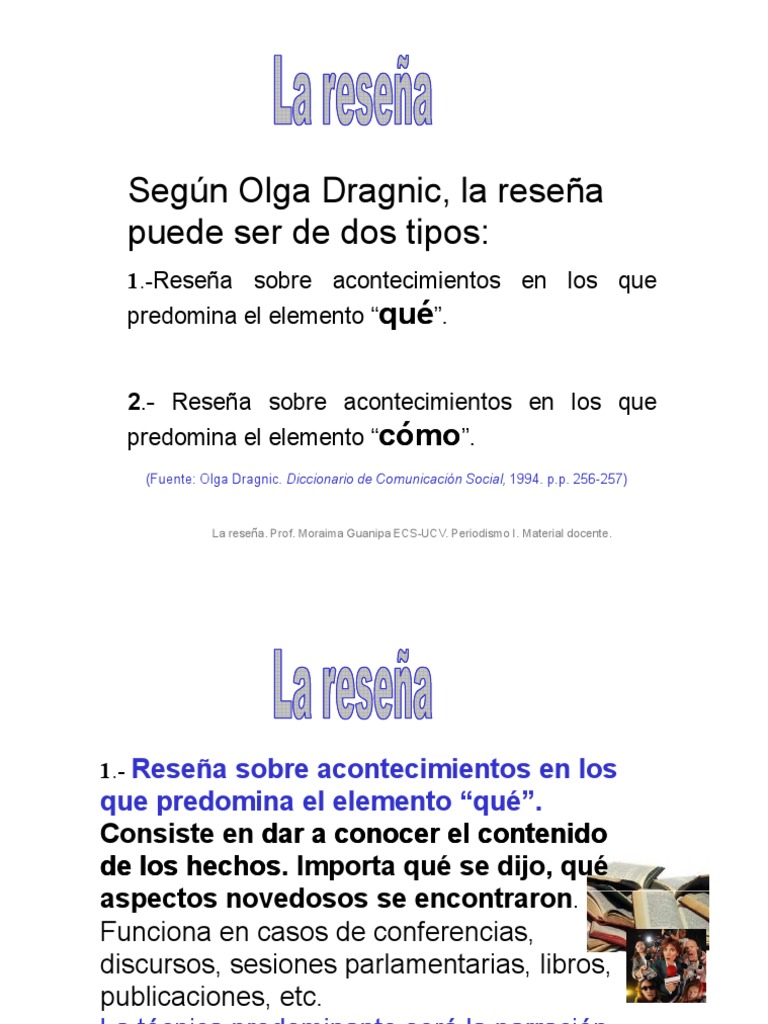 La resea. Prof. Moraima Guanipa ECS-UCV. Periodismo I. Material docente.