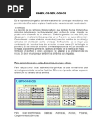 Es la representacin grafica del relieve a travs de iconos que describen y nos permiten identifica sobre un plano los diferentes variacin desde nuestro suelo. El smbolo.- La eleccin de los smbolos litolgicos tiene que ser bien hecha. Primero hay smbolos determinados (exclusivamente) para un tipo de rocas. Adems se puede variar el tamao de los smbolos: Smbolos grandes son ms fcil para dibujar pero en afloramientos pequeos se ve feo o no se puede diferenciar. Generalmente existen smbolos orientados (como los ladrillos de la caliza) y s m b o l o s s i n o r i e n t a c i n ( c o m o arenisca) . G r f i c a m e n t e s e v e m e j o r u n a combinacin de los dos tipos de smbolos en una mapa (S la litologa lo permite). El uso nico de smbolos orientados produce tal vez un desorden en el mapa. El problema general es, qu solo al final se ve la esttica del mapa. Smbolos en perfiles o cortes geolgicos se adaptan a la orientacin de las rocas. Es decir en un pliegue tambin los smbolos son plegadas.