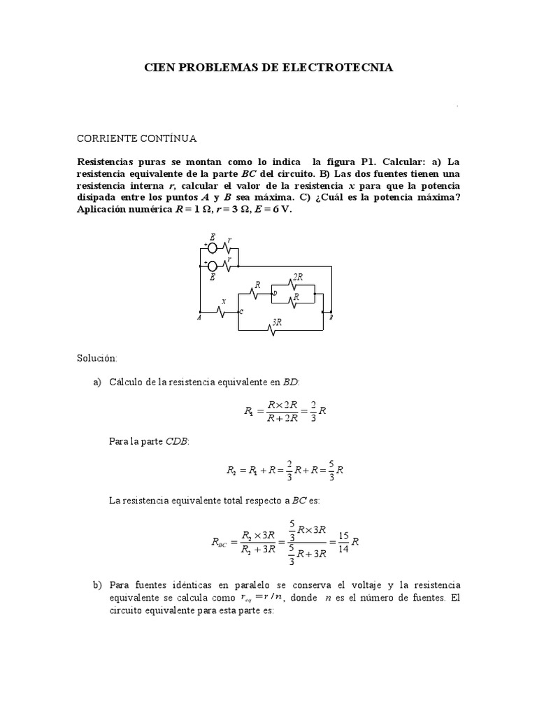 resistencia equivalente de la parte BC del circuito. B) Las dos fuentes tienen una