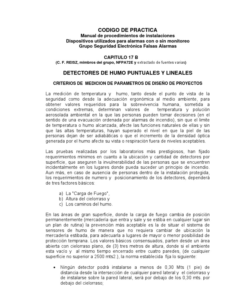 (C. F. REISZ, mimbros del grupo, NFPA72E y extractado de fuentes varias)