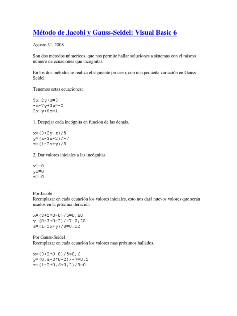 Mtodo de Jacobi y Gauss-Seidel: Visual Basic 6