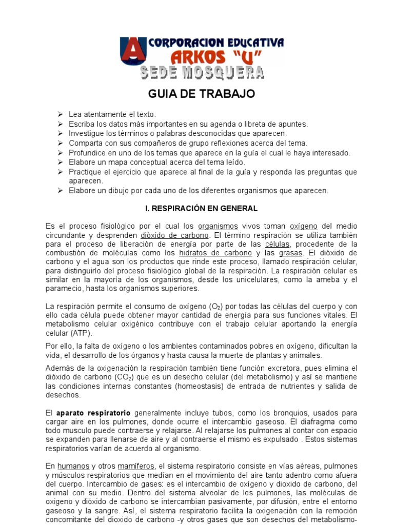 Por respiración generalmente se entiende al proceso fisiológico indispensable para