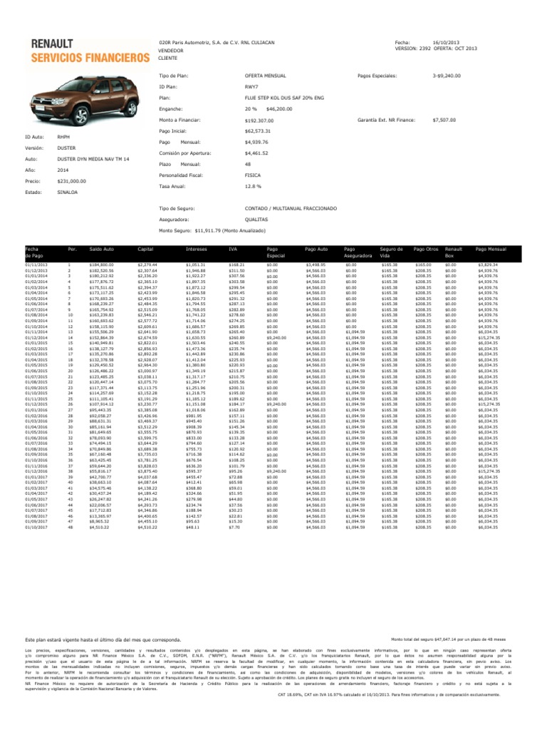 momento de realizar la operacin de financiamiento y/o adquisicin con el franquiciatario Renault de su eleccin. Sujeto a aprobacin de crdito. Los planes de seguro gratis no incluyen el seguro de los accesorios.
