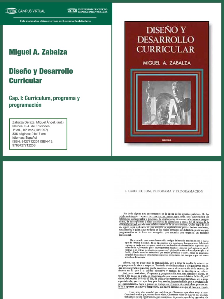 Zabalza Beraza, Miguel ngel, (aut.) Narcea, S.A. de Ediciones 1 ed., 10 imp.(10/1997) 336 pginas; 24x17 cm Idiomas: Espaol ISBN: 8427712251 ISBN-13: 9788427712256