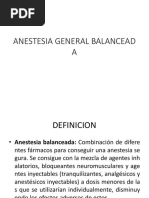 Es un estado reversible de depresin del sistema nervioso central, caracterizada por prdida de la conciencia, de la sensibilidad, de la motilidad y de los reflejos. Un anestsico debe cumplir con los siguientes efectos farmacolgicos: Insensibilidad al dolor Perdida de los reflejos tanto de carcter somtico como vegetativos Amnesia completa Relajacin de la musculatura esqueltica Prdida de conciencia.