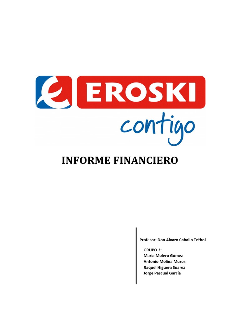 1. INTRODUCCIN 1.1. 1.2. 1.3. 1.4. 1.5. 1.6. 2. 2.1. 2.2. 2.3. 3. 4. Cronologa de Eroski Marcas propias Logstica y distribucin Responsabilidad Social Corporativa Misin Caprabo ANLISIS DEL BALANCE Y SU EVOLUCIN ANLISIS DEL ACTIVO ANLISIS DEL PASIVO CUADRO DE ORIGENES Y APLICACIN DE FONDOS CUENTA DE PRDIDAS Y GANANCIAS ANLISIS DEL LOS PERIODOS DE MADURACIN. FONDO DE MANIOBRA Y NOF