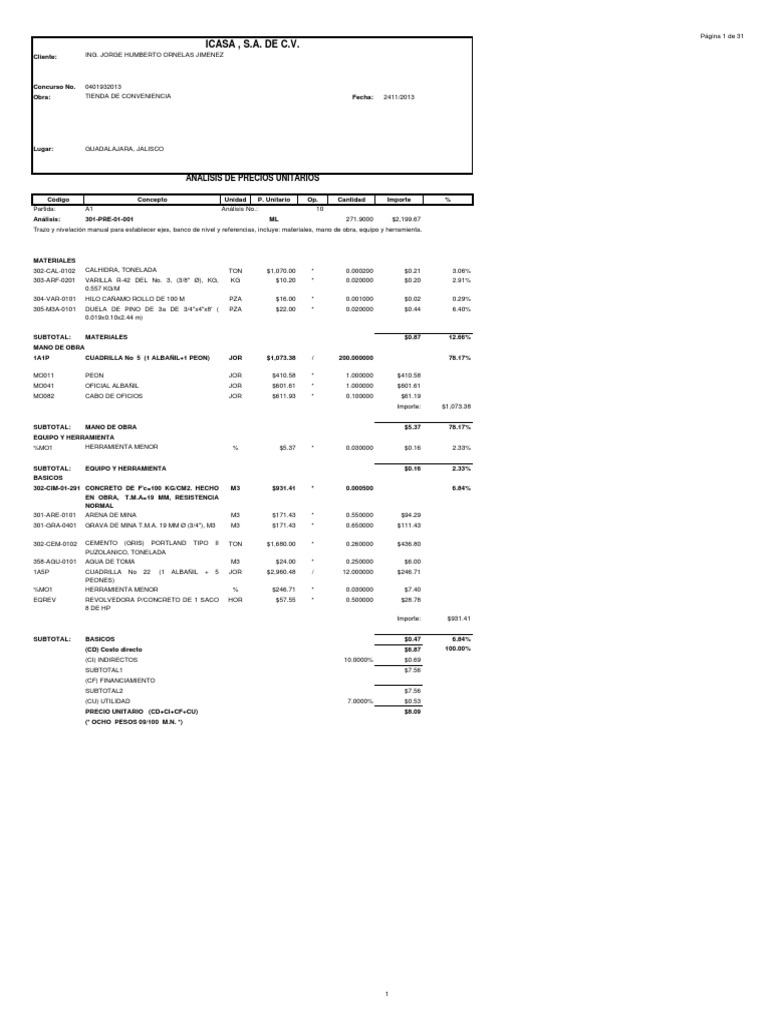 Análisis de Precios Unitarios en Construcción
