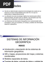 SIG es un conjunto de procedimientos usados para almacenar y manipular datos geogrficamente referenciados, es decir objetos con una ubicacin definida sobre la superficie terrestre bajo un sistema convencional de coordenadas pueden ser: Grficos No grficos o alfanumricos.